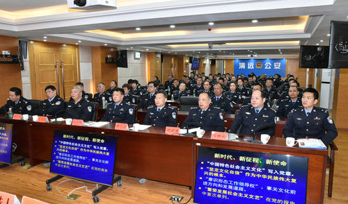 局属各单位部分代表和各县(市、区)公安局在家局领导,基层科所代表分别在市交警支队分会场和各县(市、区)公安局分会场收听收看讲座。