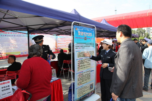 12月4日 交警支队派员参与我市宪法宣传日活动并开展法律咨询。